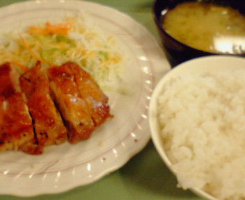 「鳥肉の塩焼き」~うん、おいしかったなぁ。お味噌汁はかぼちゃ。かぼちゃおいしぃ。そうそう天ぷらもかぼちゃが一番おいしいんですよね。もしかしてハローウィンが近いからかぼちゃのお味噌汁?やだぁ、食堂のおばちゃん素敵。