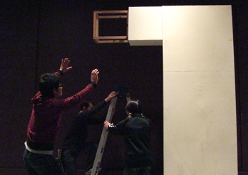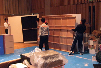 「月曜日の搬出の時も、専用車にて運搬することになってます」と、大道具製作責任者の光来出は、淡々としかし緊張した面持ちで語ってくれた。